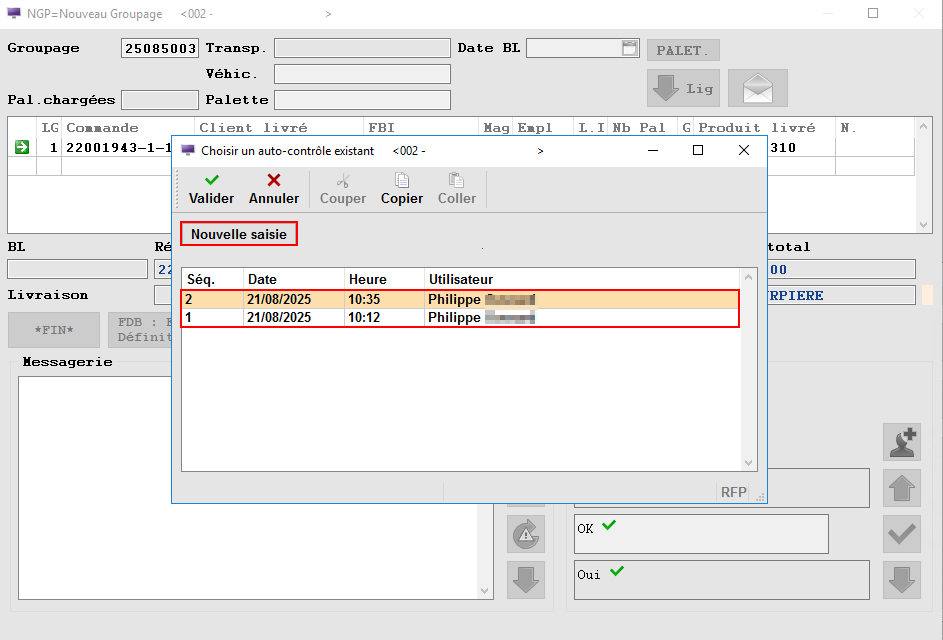 ou lancer à tout moment un contrôle intermédiaire sur un groupage.