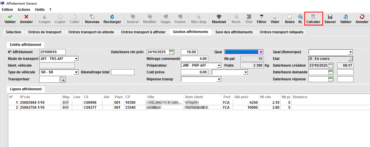 Depuis vos écrans de préparation de commandes et d’expédition des affrètements, vous pouvez :