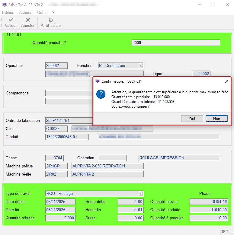 ✅ Sécurisation des saisies atelier : les opérateurs sont guidés et alertés en cas de quantité anormale.