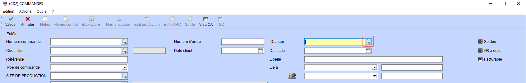 En saisie de commande, lorsque vous appuyez sur F7 dans l'écran "Dossier de rattachement", la liste proposée peut désormais être filtrée automatiquement en fonction du contexte (client, date, type de dossier, etc.).